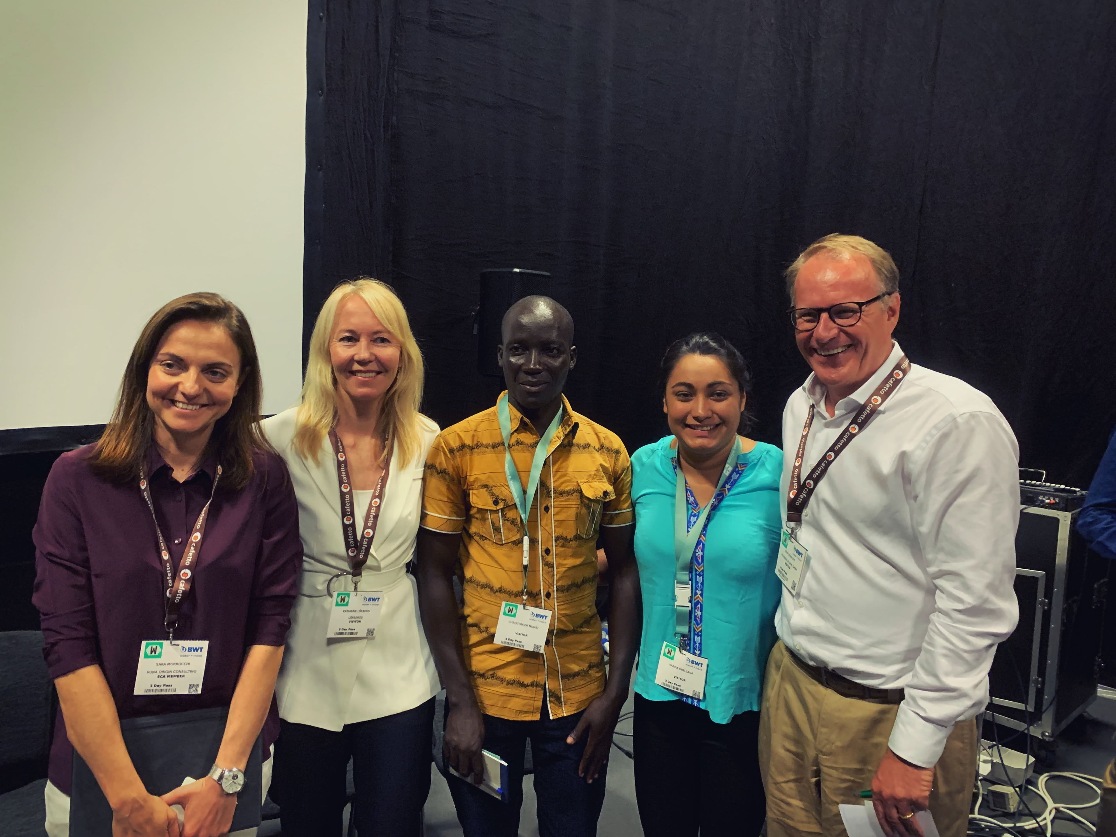 “An Unequal Pair: Coffee Industry Leaders & Farmers Discuss Their Needs & How to Align Them” at Specialty Coffee Association’s World of Coffee in Berlin. International Coffee Partner’s (ICP) aim with producing this panel discussion was to bring industry leaders and smallholder farmers on one stage together, a rare occurrence at industry shows such as this. Christopher was joined by another smallholder coffee farmer, Karina Orellana from Honduras; Kathrine Löfberg, Chairperson of ICP & Löfbergs and Jörn Severloh, Managing Director of Neumann Gruppe. The panel was moderated by a longtime coffee consultant, Sara Morrocchi of Vuna Origin Consulting.