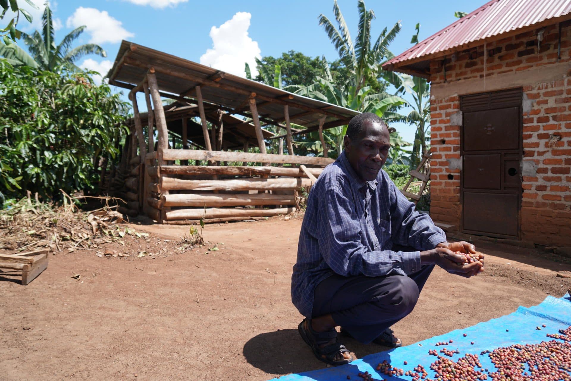 Richard Mukasa is a very modest man, who is grateful for his work as a coffee farmer. Although he only owns a small parcel of land of about 1.6 hectares, Richard is proud of his plot. His field is located about half an hour drive southeast of Masaka, a medium-sized town with a population of approximately 100.000 in the Central Region of Uganda just west of the famous Lake Victoria. Reachable by driving a bumpy gravy road, his plot appears in the middle of a very hilly and green area.